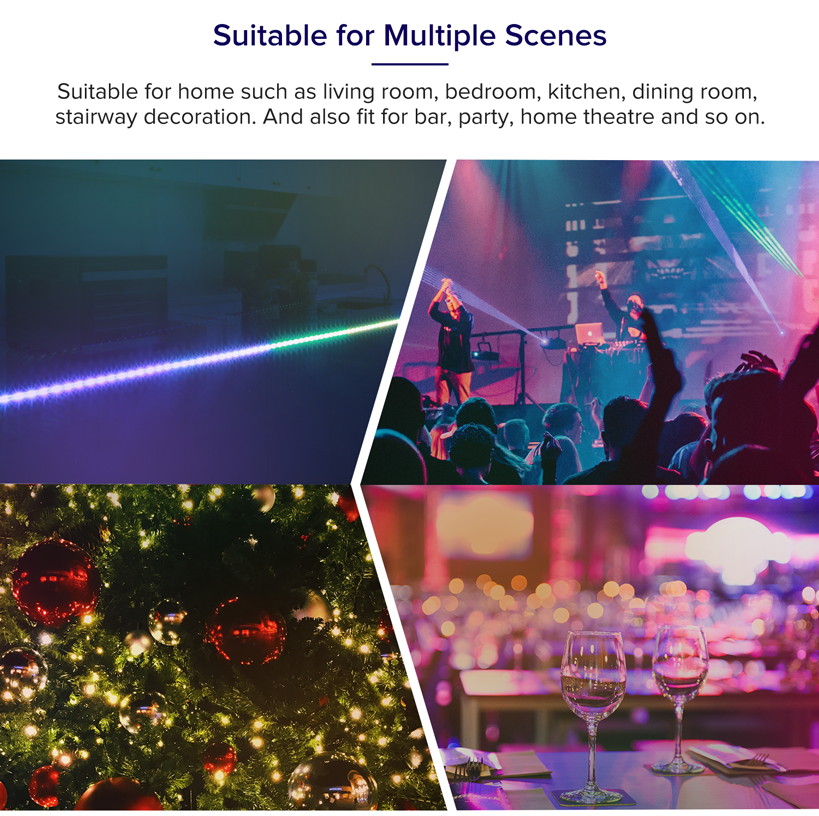 50 color zones RGBIC, lighting sync with music, just move your finger to increase visual interset. Making them bright enough to illuminate your bedroom, kitchen, porches, cabinets and gaming room.