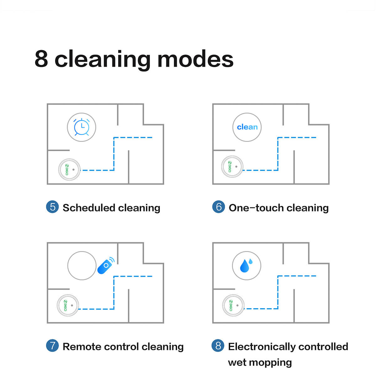 5. Selective Cleaning Modes for Various Messes: Scheduled, Deep, Edge and Spot Cleaning Mode deliver effortless cleanliness.