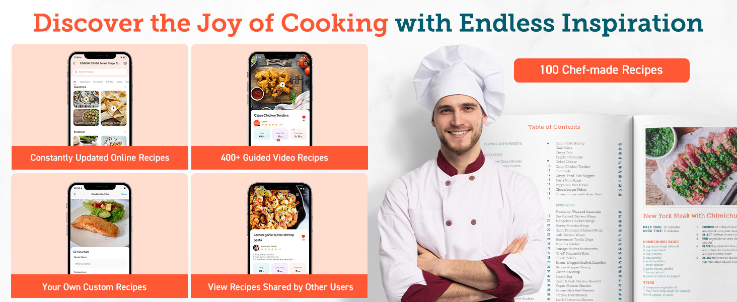 Smart Control: Control settings, monitor cooking, and browse recipes from your smartphone.