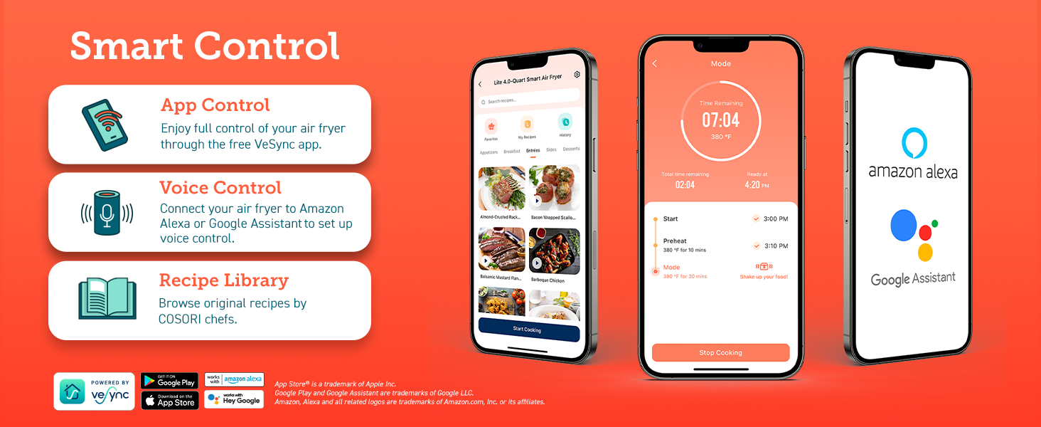 Voice Control: Connect your air fryer to Amazon Alexa or Google Assistant to set up voice control.