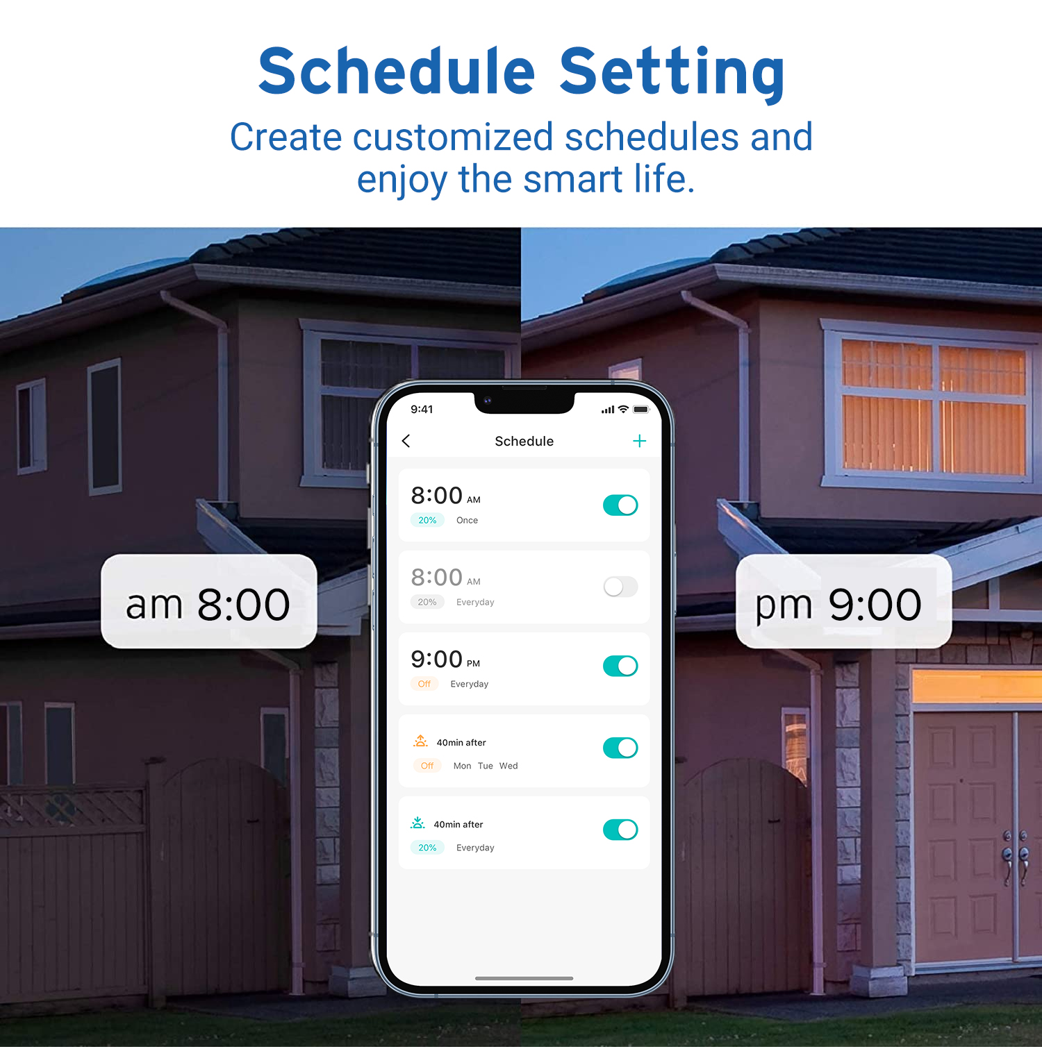 Schedule Mode: With the schedule mode, the bulb can be customized according to your own lifestyle, you can set the Wi-Fi LED lights to turn on or off at a specific time.