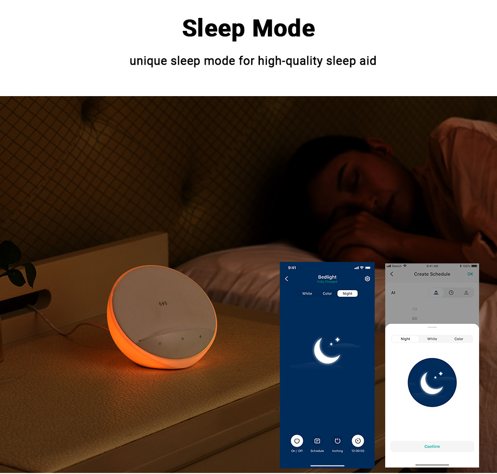 Modern design | Sleep mode | Wireless charging | Adjustable colors | Relax your mind | VeSync app control