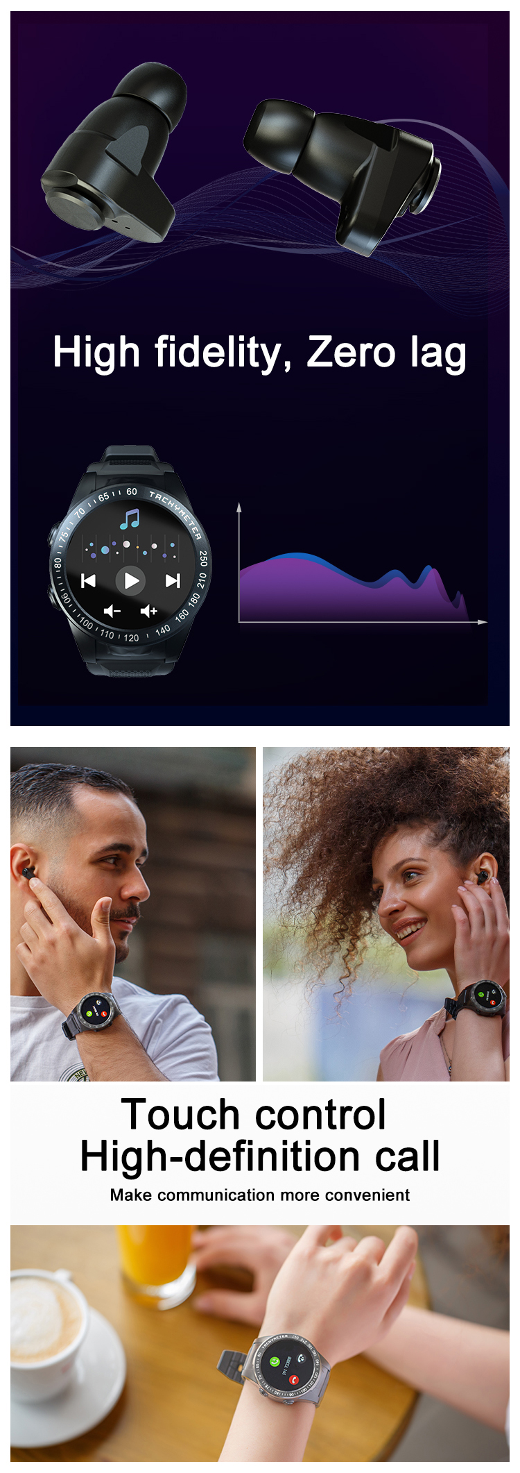 On-wrist charging earbuds | Low latency earbuds | Fitness & health tracker | VeSync V3.2.31 or later Note: Make sure the charging case is dry when you use the watch to charge earbuds.