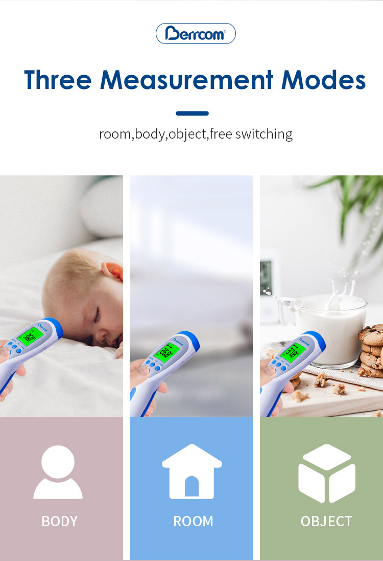 3 Modes: Body mode can measure all ages of human body temperature, such as newborn, baby, kids, and adults; Room mode can measure the room temperature; Surface mode can measure the bath water and milk bottle temperature.