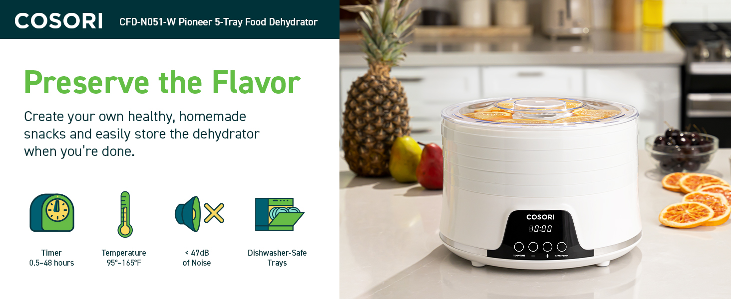 1 × COSORI Pioneer 5-Tray Food Dehydrator CFD-N051-W