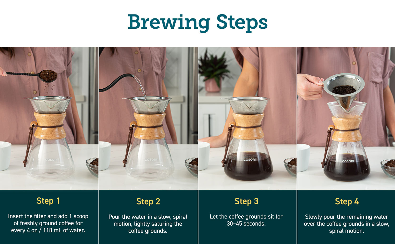 34 ounce glass coffee pot & coffee brewer with stainless steel filter