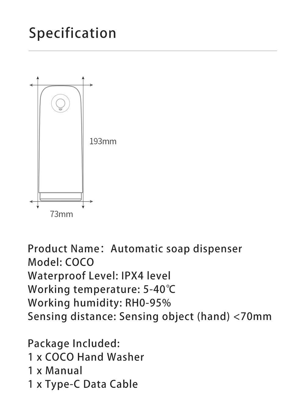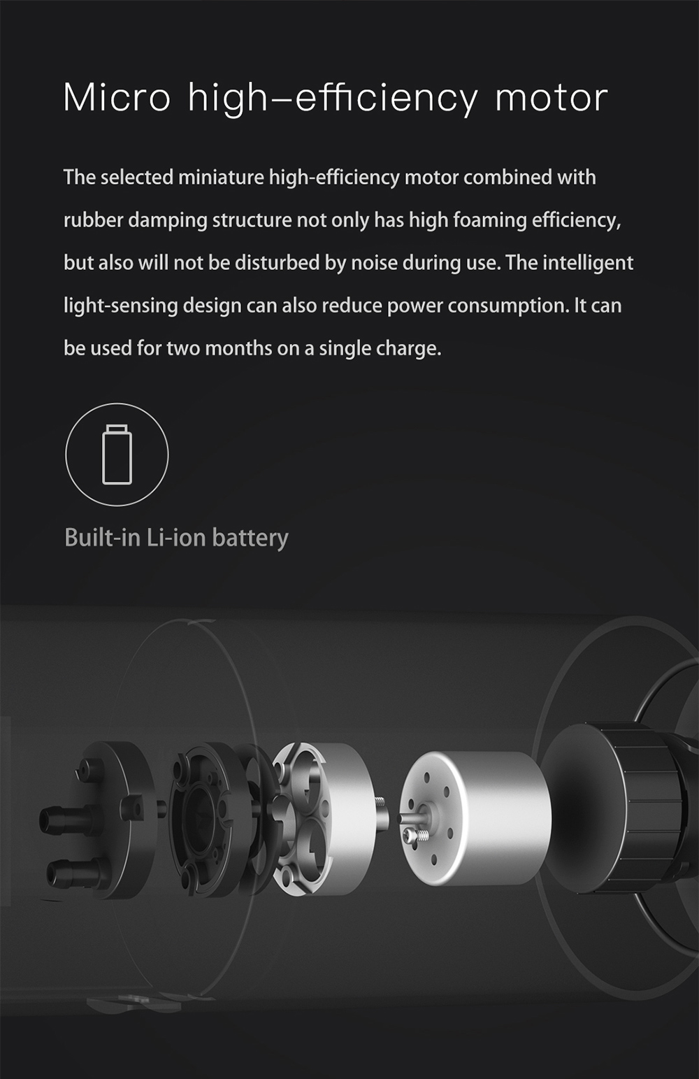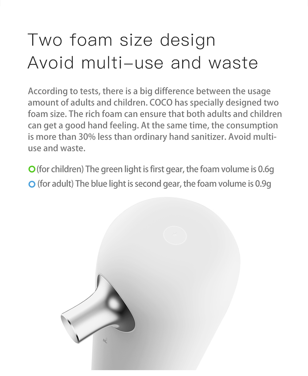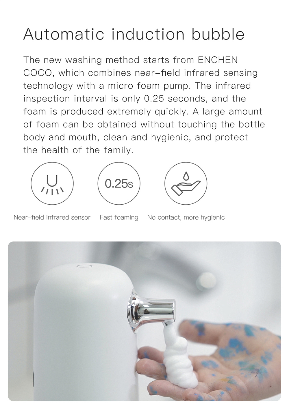 Infrared sensor for touchless operation | Reach out for bubbles, 99.9% effective antibacterial | 0.25s quick sudsing | Multi-functional indicator | Nearly noiseless | Easy to change container