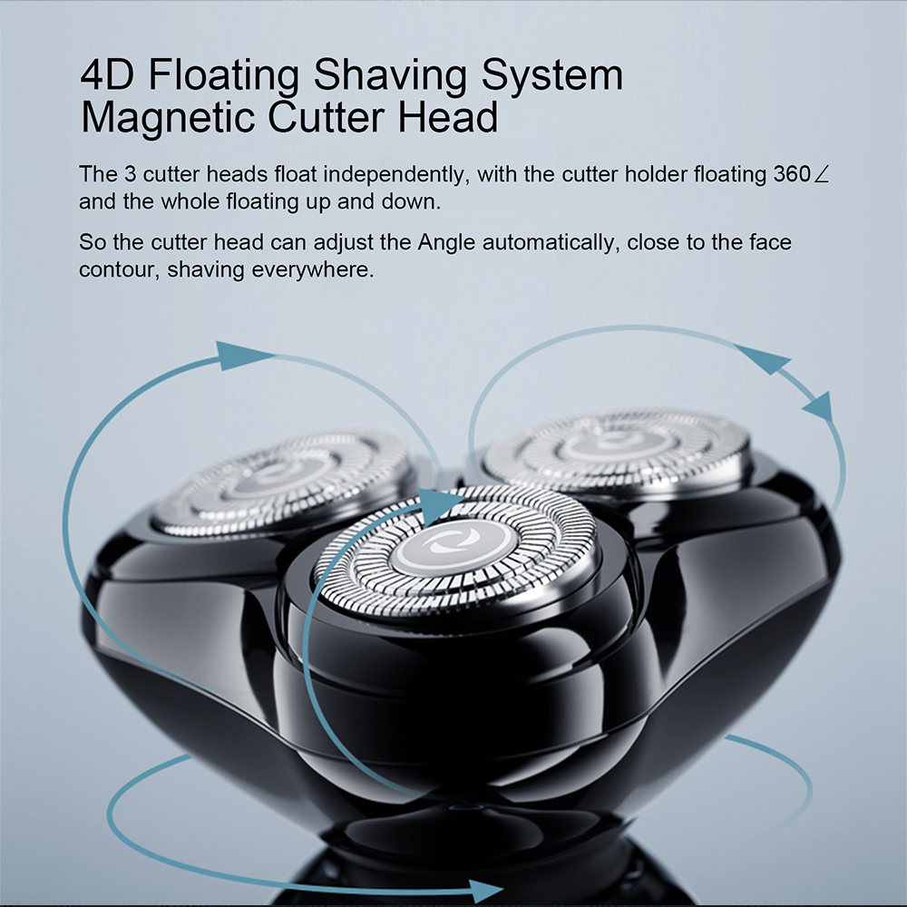 4D floating shaving system magnetic cutter head: The 3 cutter heads float independently, with the cutter holder floating 360 and the whole floating up and down.