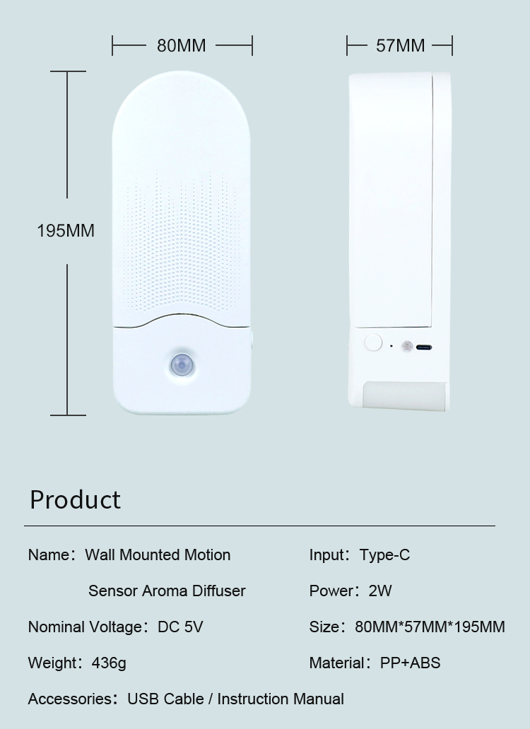 Small and does not take up space | Card slot mode with rubber plate, hung without drilling | Infrared human body sensing function at night | Automatic spray oil (Essential Oils Not Included)