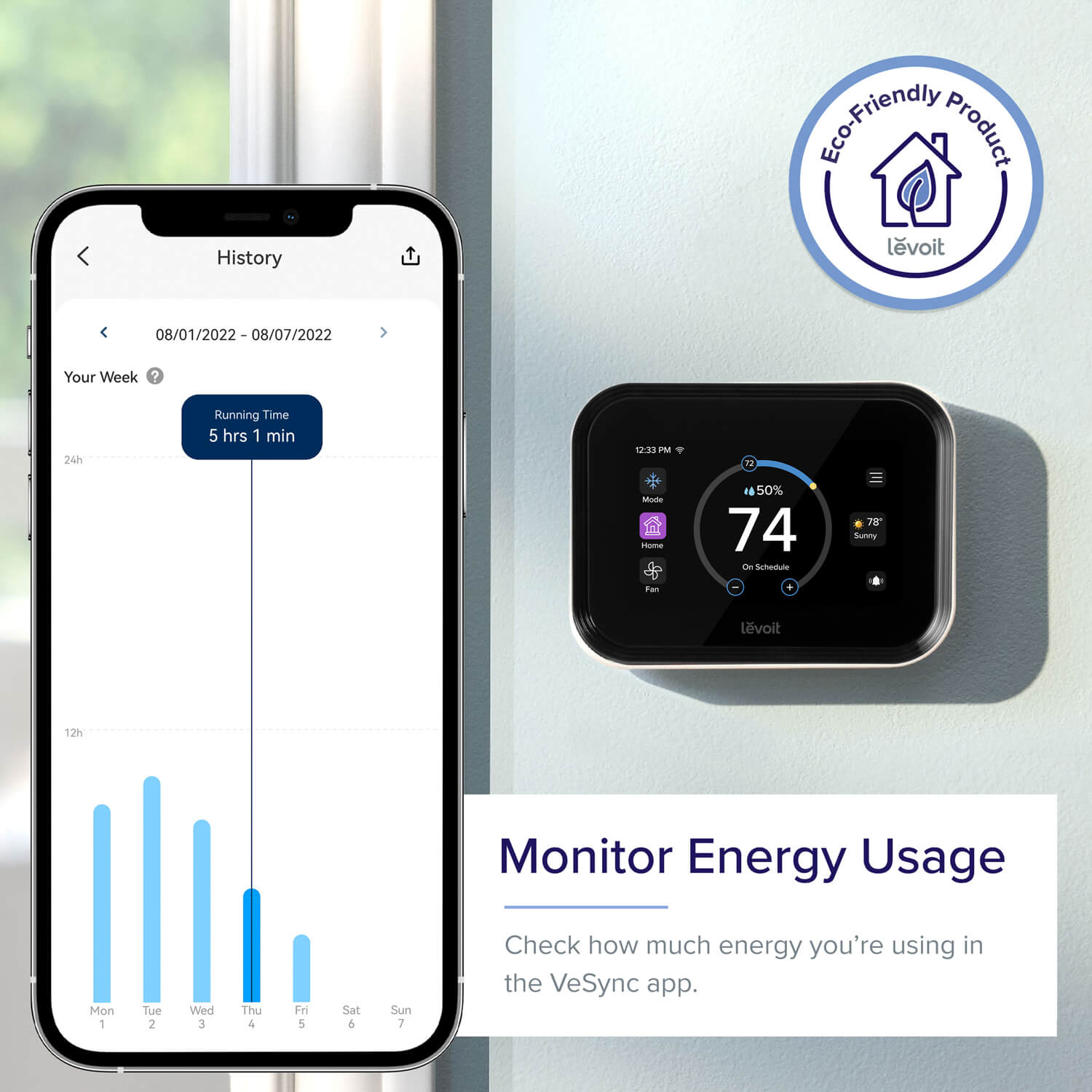 Balanced Comfort: Connect the thermostat to up to 16 Levoit sensors (sold separately) and smart humidifiers for room-to-room control.