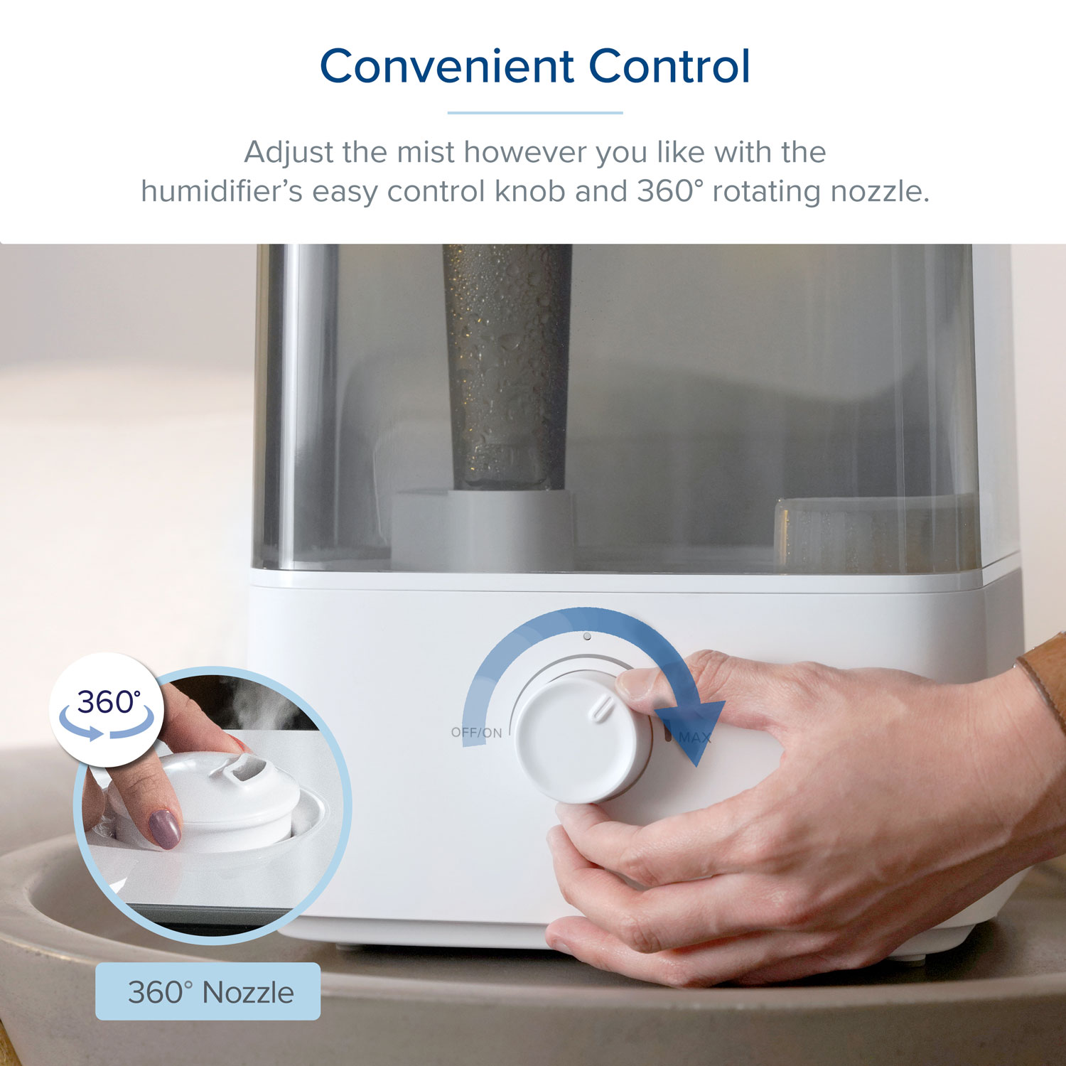 Control Knob: Rotate to turn on the humidifier and to control mist output.
