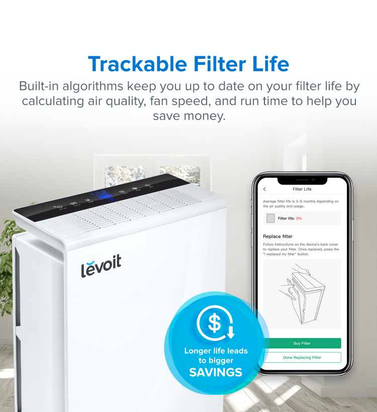 True HEPA Filtration: Traps 99.97% of fine particles 0.3 microns in size, including pollutants such as pollen, dust, and smoke.