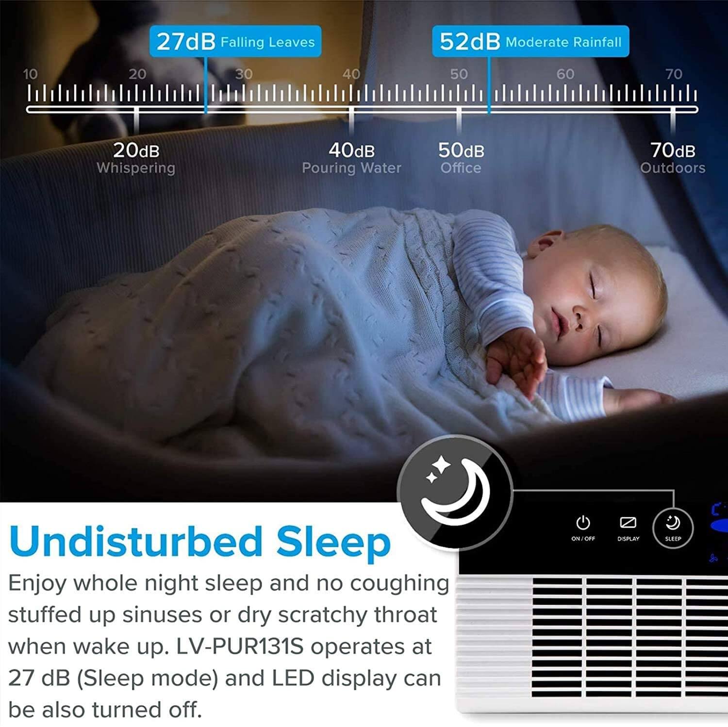 Ultra Quiet: Sleep with noise levels to as quiet as 27dB on the lowest fan speed.