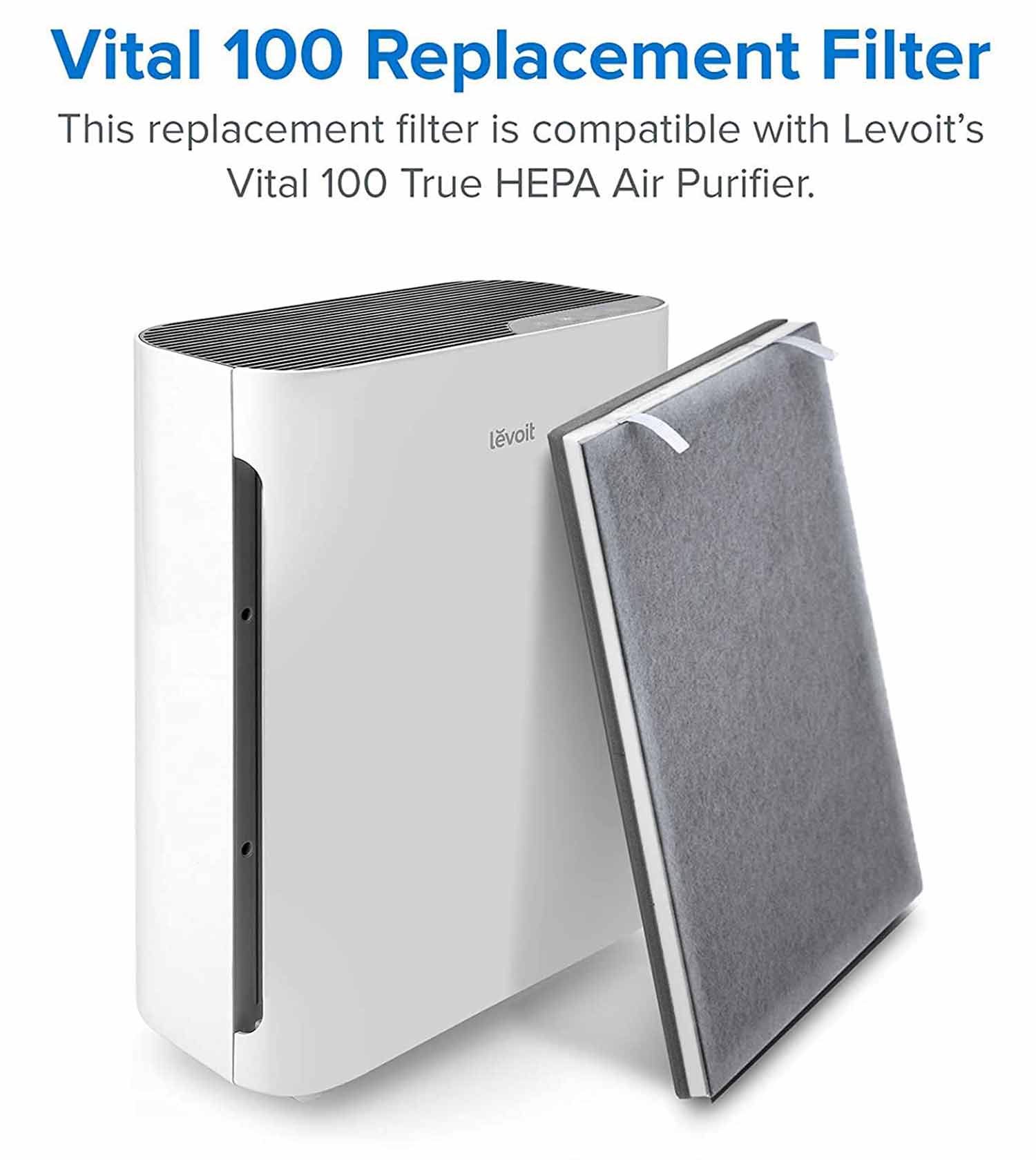 Standard replacement filter for Levoit air purifier model Vital 100. Breathe in pure air that’s free of 99. 97% of pollutants as small as 0. 3 μm such as dust mites, pet dander, and pollen.