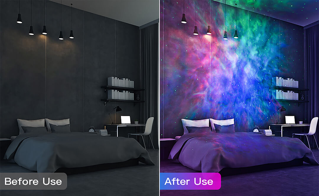 Experience the captivating allure of our innovative Observatory design, seamlessly merging vibrant, swirling nebula clouds with a radiant sea of blue stars.