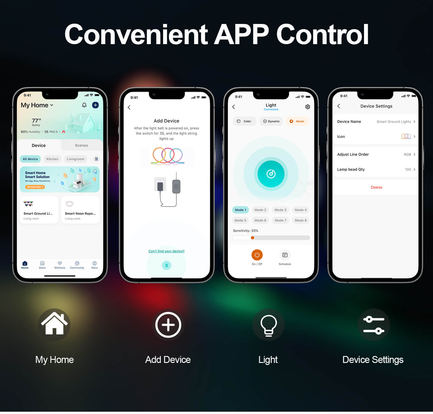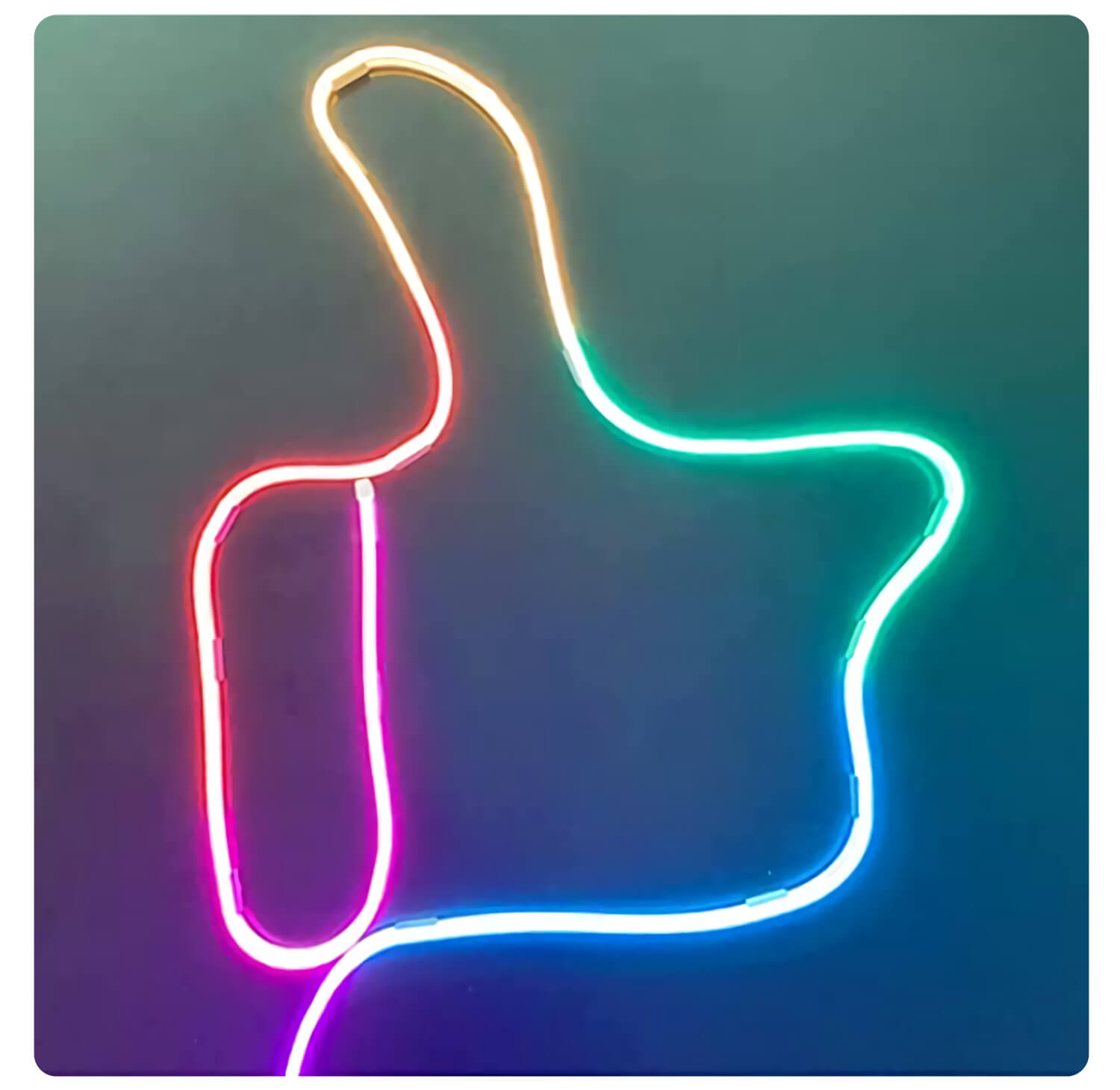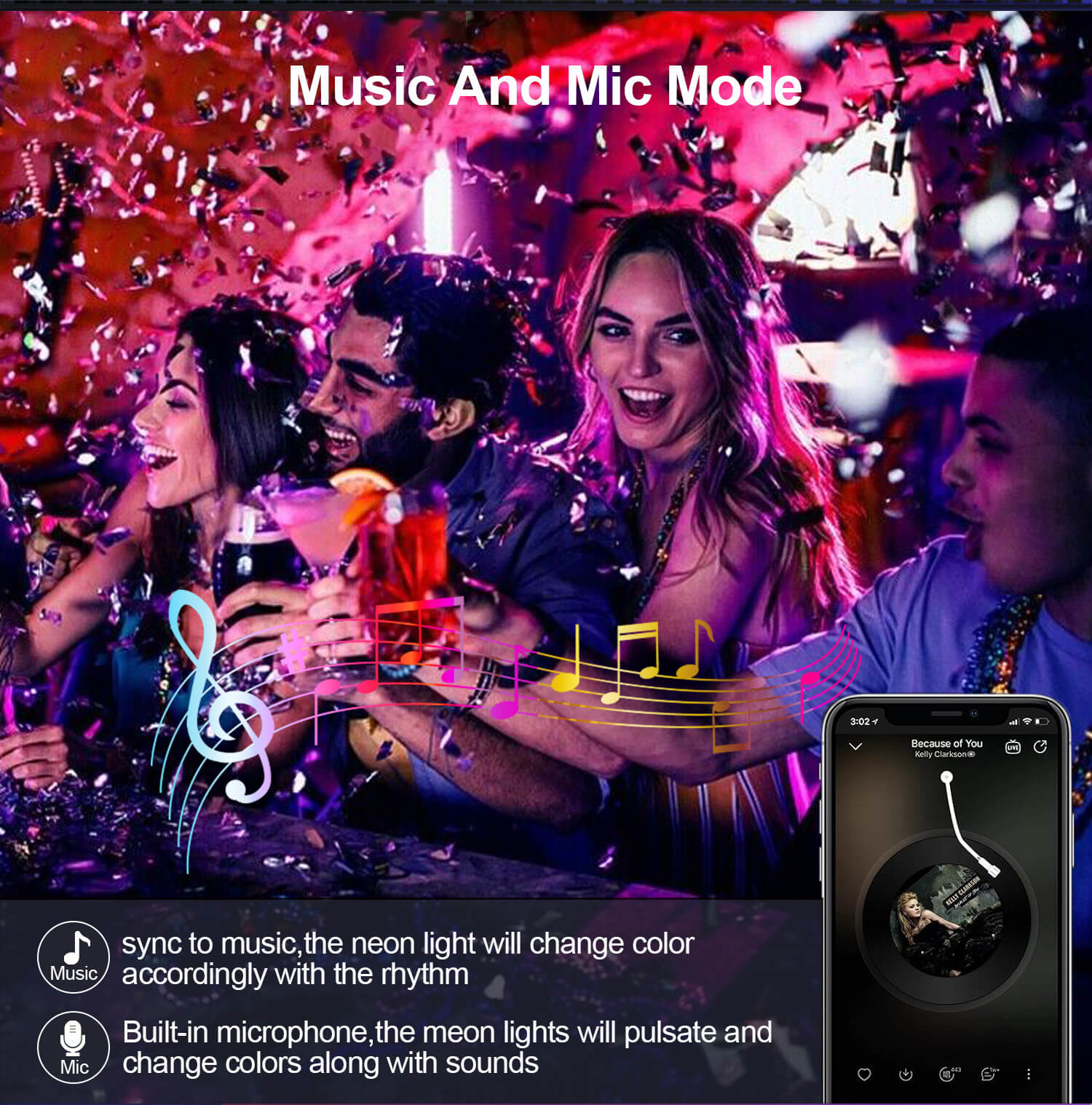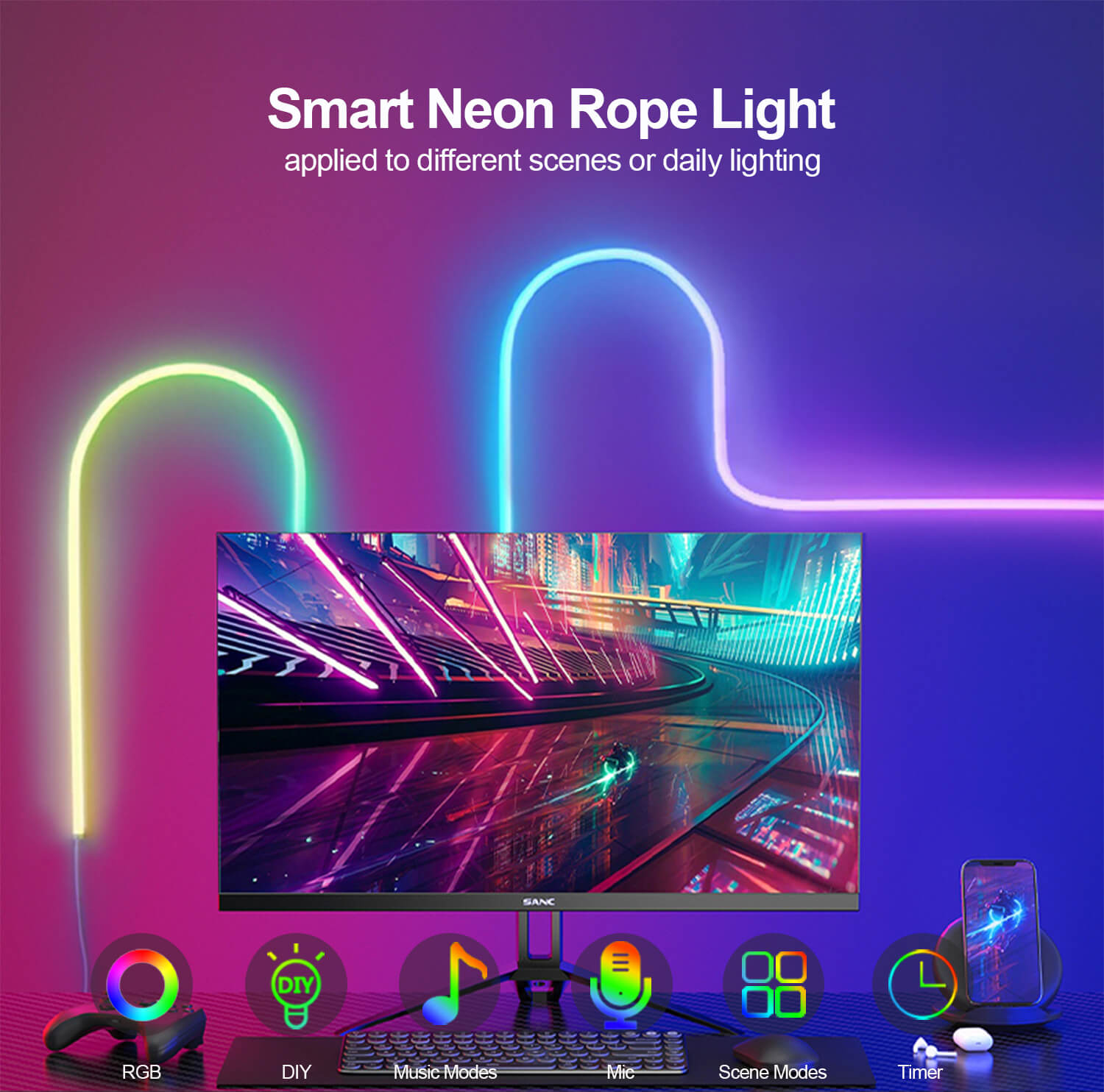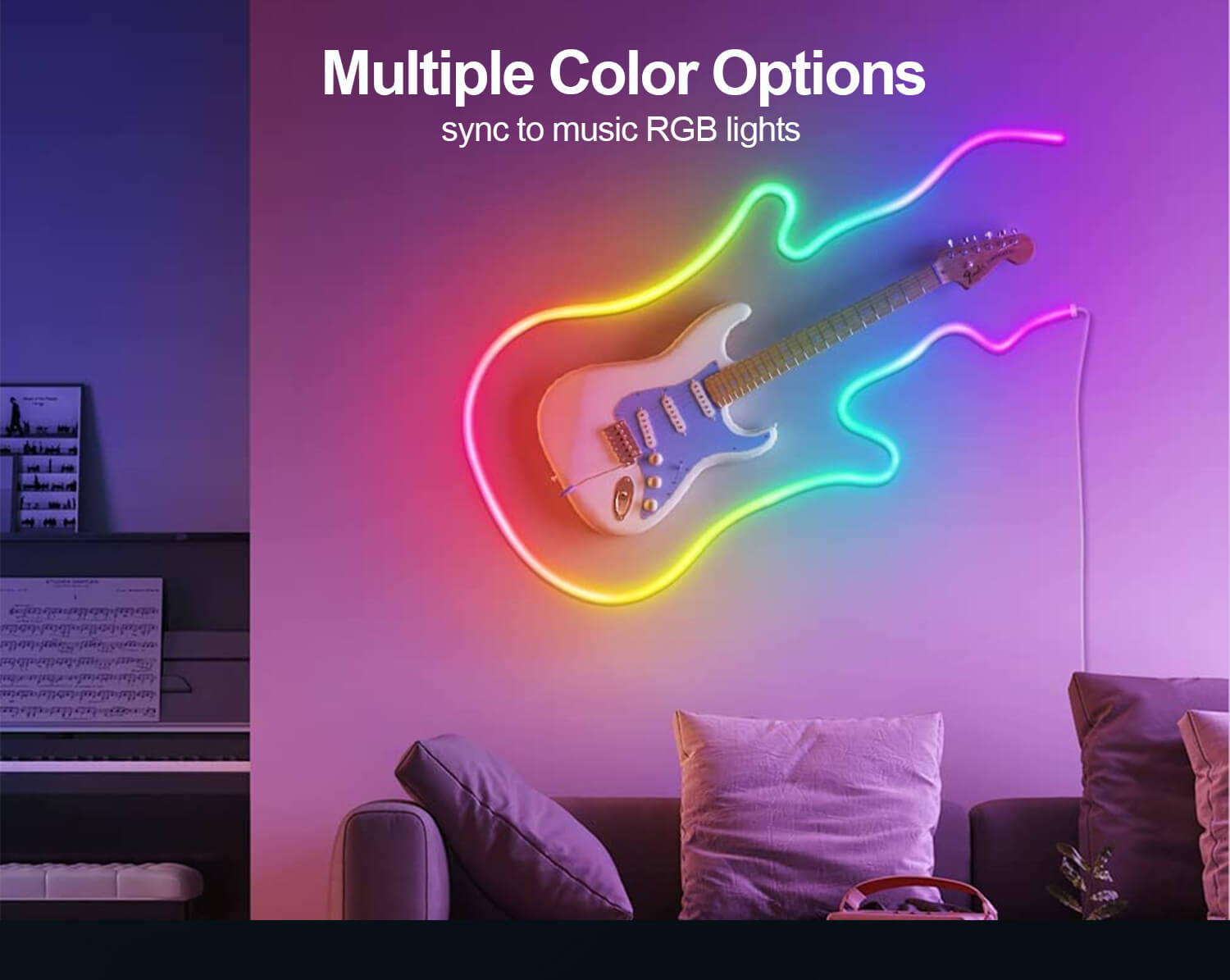 2m(6.56ft) and 5m(16.4ft) RGB LED neon rope lights with app control, smart color changing neon flex strip lights for bedroom indoors decor.