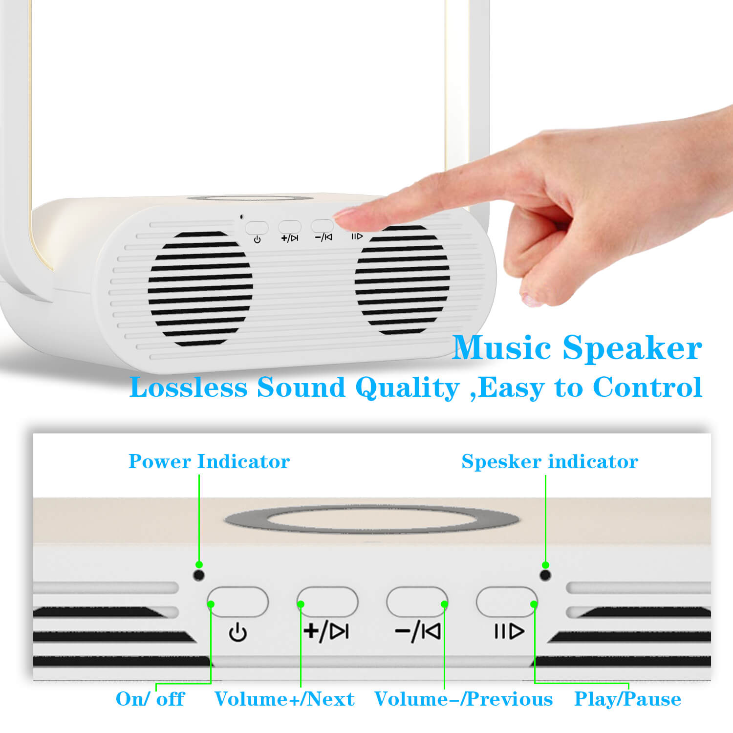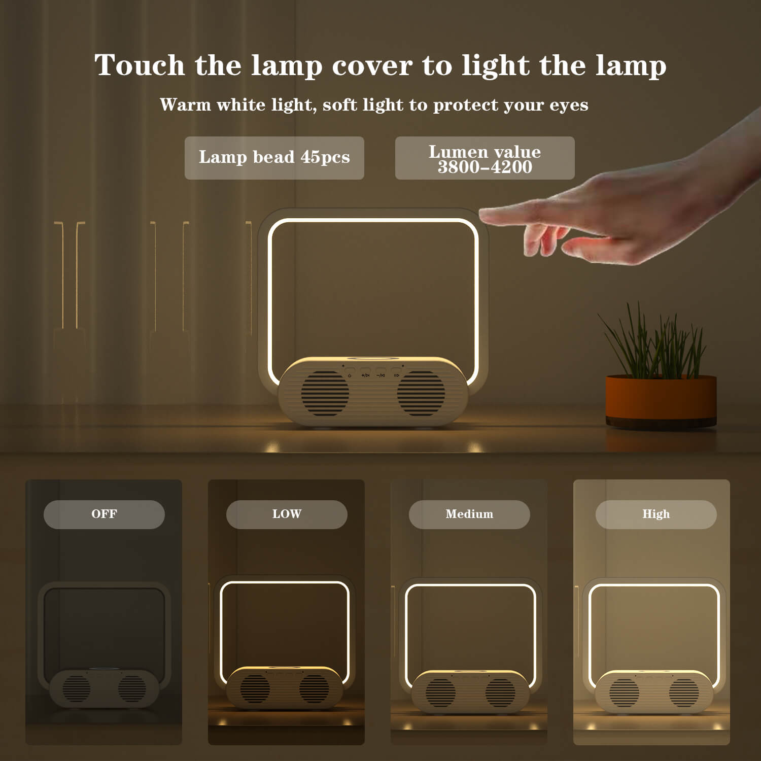 10W wireless charging | Bluetooth speaker | Touch switch,3-grade brightness touch dimmer | Soft lighting mode, no glare, relax your eyes